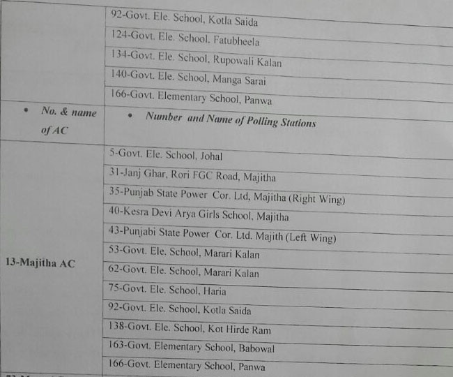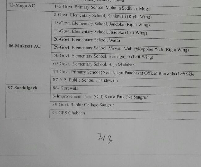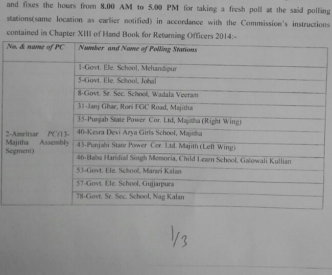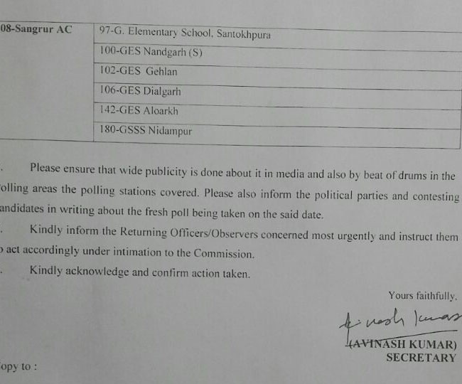 इन सीटों में मजीठा, मुक्तसर, मोगा, सरदूलगढ़, संगरूर शामिल हैं। पुनर्मतदान 9 फरवरी को होगा। मतदान का समय सुबह 8 से सायं पांच बजे तक होगा। इसके लिए सभी तैयारियां मुकम्मल कर दी गई हैं। मजीठा में 12, मोगा में एक, मुक्तसर में नौ, सरदूलगढ़ में चार, संगरूर में छह पोलिंग स्टेशनों पर मतदान होगा।