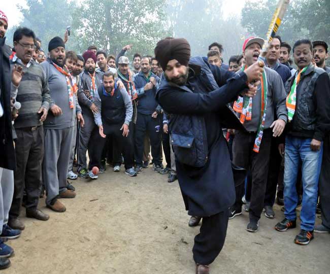 युवाओं के साथ क्रिकेट खेलते नवजोत सिंह सिद्धू।