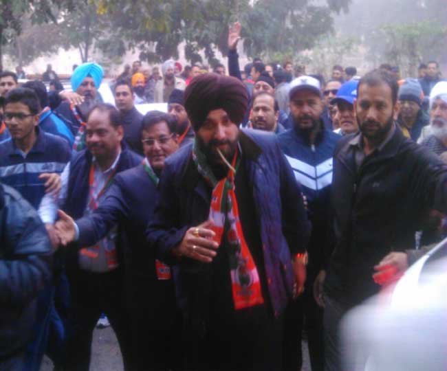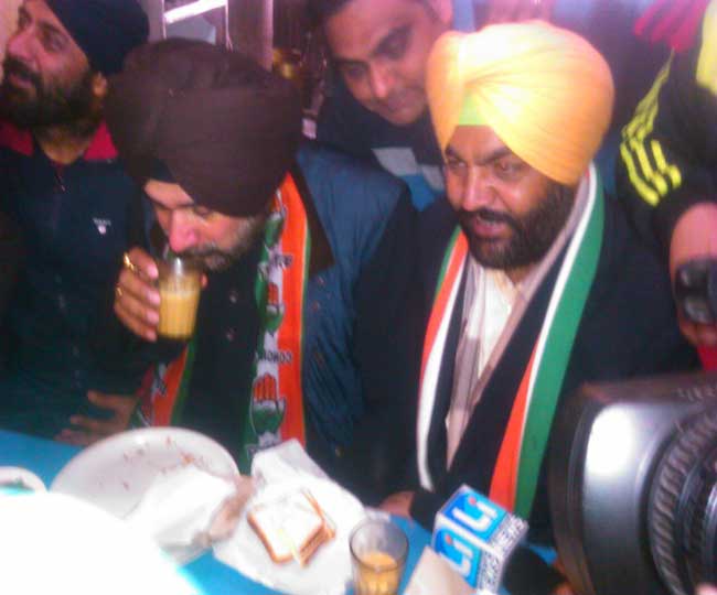 दातून की और करेले का जूस पियाइस दौरान, कंपनी पार्क में दातून भी किया और करेले जूस पिया। एेतिहासिक कंपनी बाग में पठानी सूट व स्लीव लैस जैकेट पहनकर सुबह लगभग सात बजे पहुंचे सिद्धू ने नीम की दातुन की। इसके बाद तरोताजा होने के लिए करेले का जूस पिया। सिद्धू को देखकर बाग में सैर कर रहे लोग उनके इर्द-गिर्द आ गए। लोगों ने उनको जीत के लिए शुभकामनाएं भी दीं।