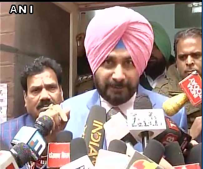 पत्रकारों से बात करते नवजोत सिंह सिद्धू।
