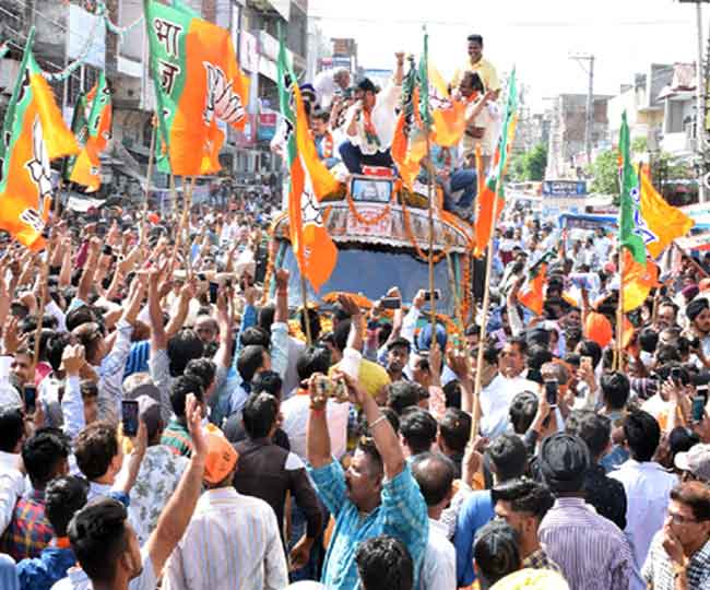 ट्रक से रोड शो निकालते बॉलीवुड स्टार सनी देयोल।