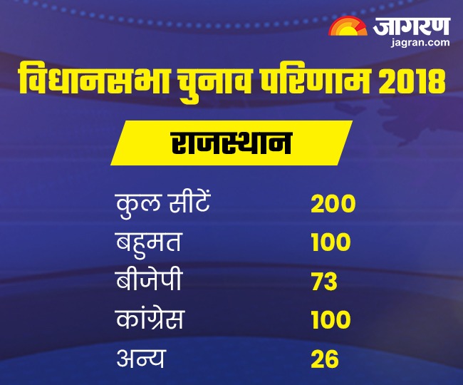 राजस्थान में 2018 में हुए विधानसभा चुनाव में कांग्रेस ने 108, जबकि भाजपा ने 70 सीटों पर जीत दर्ज की थी। वहीं, राष्ट्रीय लोकदल को एक, राष्ट्रीय लोकतांत्रिक पार्टी को तीन और भारतीय ट्राइबल पार्टी को दो सीटों पर जीत मिली थी। इसके अलावा, 13 निर्दलीय उम्मीदवार भी जीत हासिल करने में सफल रहे।