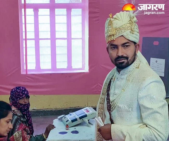 चुनाव के दौरान एक अलग ही नजारा देखने को मिला। एक नवविवाहित दूल्हा मतदान की जिम्मेदारी को समझते हुए वोट करने पहुंचा।