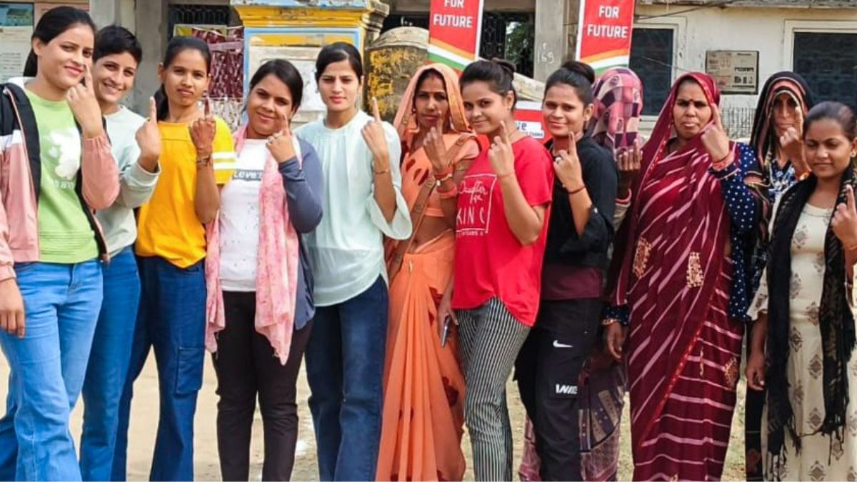 राजस्थान विधानसभा चुनाव के लिए सीकर में वोट डालने के लिए कतार में खड़ी महिला मतदाता।
