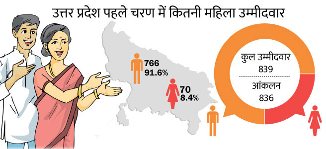 राजनीतिक पार्टियां आमतौर पर महिला उम्मीदवारों पर दांव कम लगाती हैं। उत्तर प्रदेश विधानसभा चुनाव के पहले चरण में भी यह साफ देखने को मिल रहा है। ...और पढ़ें