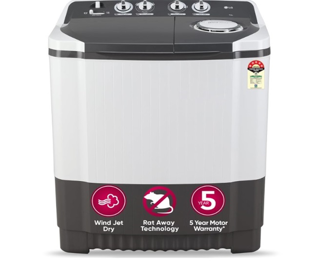 बजट में एलजी वाशिंग मशीन लेनी है, तो इस सेमी-आटोमेटिक मशीन को ला सकते हैं। एडवांस फीचर्स के चलते इस LG 7 Kg Washing Machine को यूजर्स द्वारा 4.3 स्टार की रेटिंग दी गयी है। 3 से 4 सदस्यों वाले परिवारों के लिए बेस्ट एलजी वाशिंग मशीन 7 kg कैपेसिटी के साथ आती है।