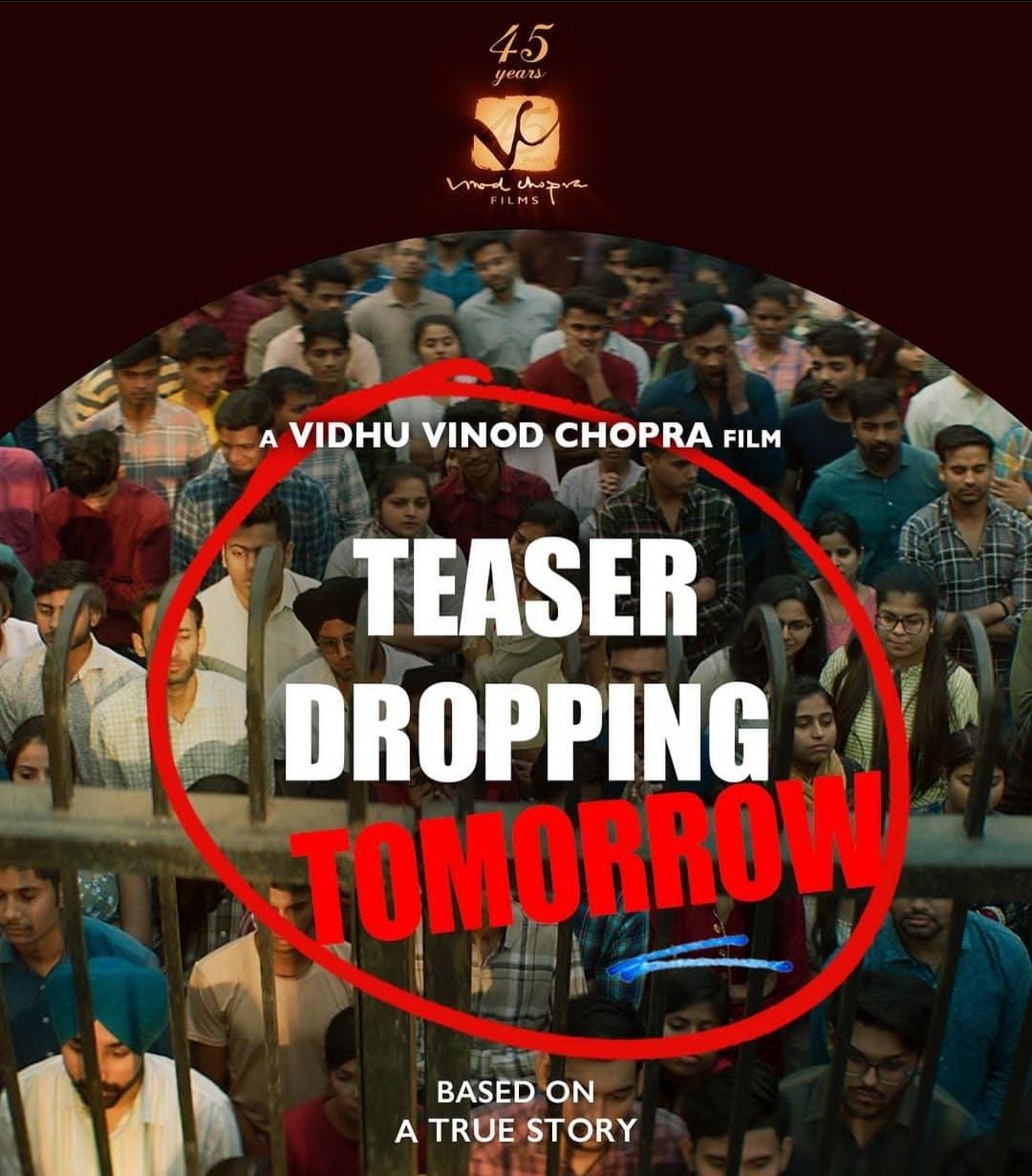 फिल्म के पोस्टर ने आगामी टीजर और फिल्म के बारे में लोगों की उत्सुकता बढ़ा दी है। विधु विनोद चोपड़ा की यह कहानी काफी लोगों को पसंद आ सकती है, क्योंकि यह लाखों लोगों से प्रेरित कहानी है। यह एक ऐसी कहानी है, जिससे देश का हर व्यक्ति कनेक्ट कर पाएगा।