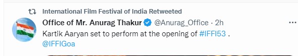 फिल्म फेस्टिवल की ओपनिंग सेरेमनी में बॉलीवुड स्टार कार्तिक आर्यन परफॉर्म करेंगे। वह अपनी फिल्मों के कुछ हिट गानों पर थिरकते हुए दिखाई देंगे।