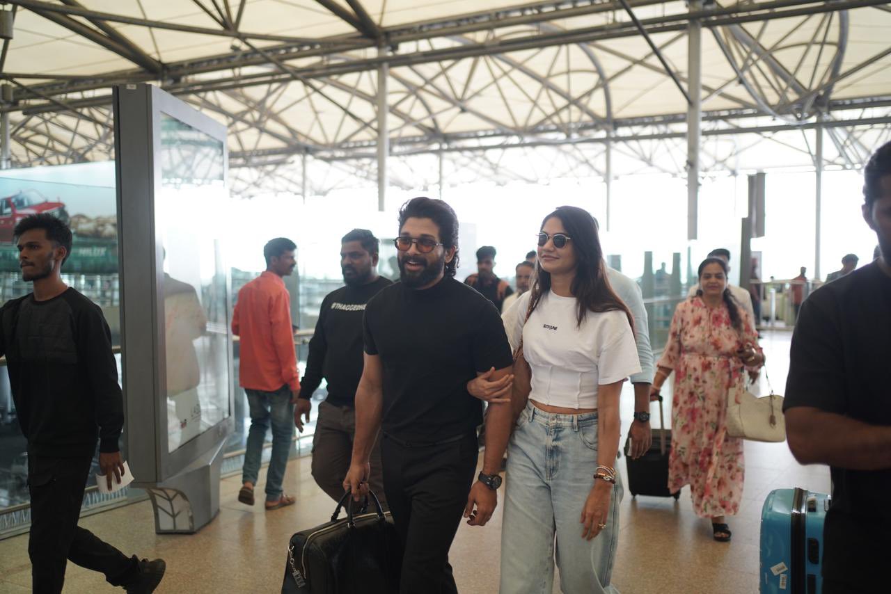 सोशल मीडिया पर अल्लू अर्जुन का एक वीडियो वायरल हो रहा है, जिसमें वह अपनी वाइफ स्नेहा रेड्डी (Sneha Reddy) के साथ एयरपोर्ट पर स्पॉट हुए। इस दौरान ये कपल एक-दूसरे का हाथ थामे नजर आया। एयरपोर्ट पर नेशनल अभिनेत्रा को देख फैंस खुशी से झूम उठे। अल्लू अर्जुन (Allu Arjun) को कल सर्वश्रेष्ठ अभिनेता के पुरस्कार से सम्मानित किया जाएगा, जिसके लिए वह काफी खुश है। इस दैरान अल्लू अर्जुन ने ऑल ब्लैक लुक में नजर आए तो स्नेहा डेनिम ब्लू जींस के साथ व्हाइट क्रॉप टॉप में नजर आई।