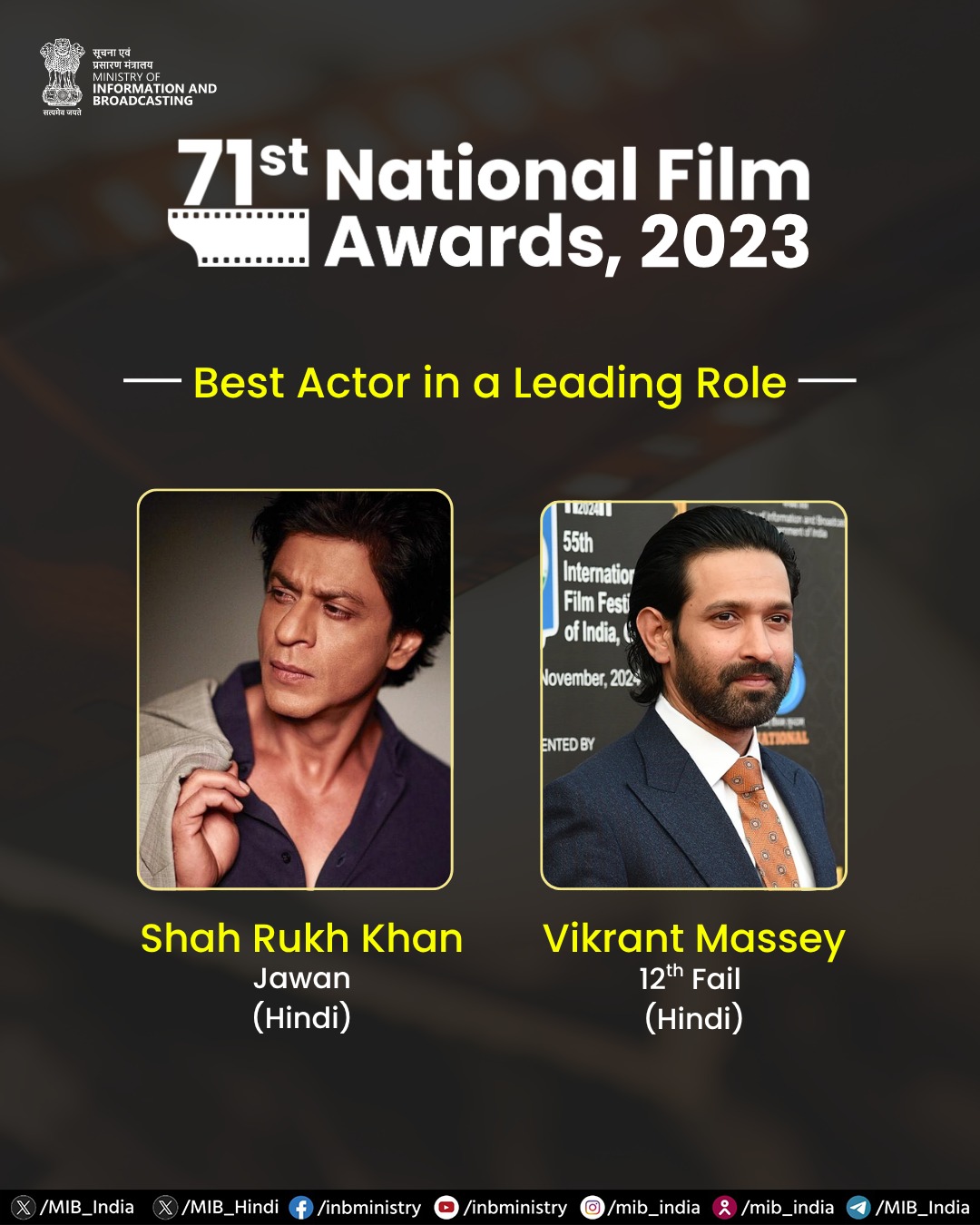 बेस्ट एक्टर- शाहरुख खान (जवान) और विक्रांत मैसी (12वीं फेल)