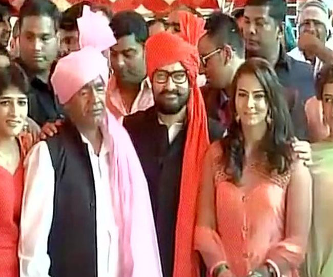 आमिर खान अपना वादा पूरा करते हुए रविवार को गीता फोगाट की शादी में शिरकत करने पहुंचे जहां उन्होंने गीता के पूरे परिवार के साथ तस्वीरें खिचवाई।