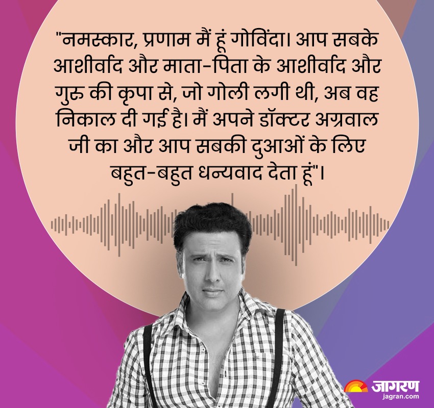 गोविंदा के मैनेजर शशि सिन्हा ने बताया कि एक्टर एक प्रोग्राम में शामिल होने कोलकाता जाने वाले थे। उनकी पत्नी पहले ही कोलकाता पहुंच गई थीं। एक्टर की फ्लाइट 6 बजे की थी लेकिन उससे पहले ये घटना हो गई। अलमारी में रिवॉल्वर रखते हुए गलती से वह दब गई और उनके पैर में चोट लग गई। उनके पैर से गोली निकाल दी गई है और वह डॉक्टर की देखरेख में ICU में हैं।