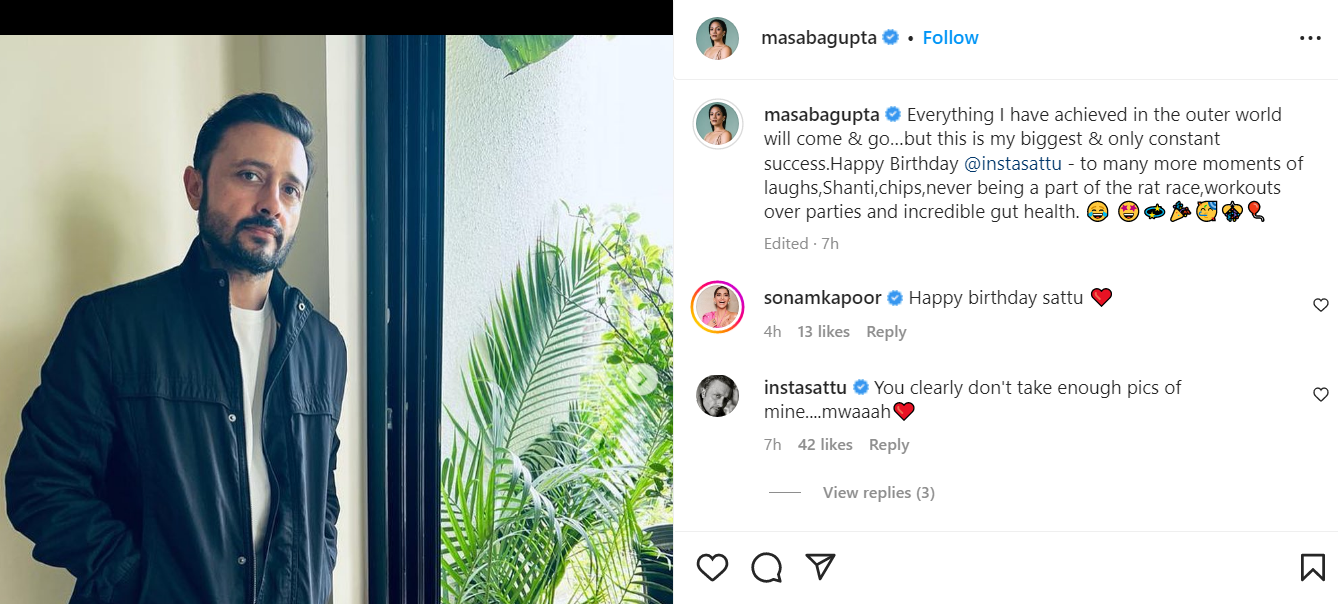 एक्ट्रेस ने अपने इंस्टाग्राम पर सत्यदीप मिश्रा की आठ अलग अलग तस्वीरे साझा की है। हर फोटो में एक्टर अलग अंदाज में नजर आ रहे हैं। इन तस्वीरों के साथ एक नोट साझा किया जिसमे लिखा- बाहरी दुनिया में मैंने जो कुछ भी हासिल किया है वह आएगा और जाएगा… लेकिन यह मेरी सबसे बड़ी और एकमात्र निरंतर सफलता है। जन्मदिन मुबारक हो सत्यदीप मिश्रा। एक्ट्रेस की इस पोस्ट पर उनकी मां नीना गुप्ता ने भी कमेंट किया है। उन्होंने लिखा है- जन्मदिन मुबारक हो सत्तू। इसी के साथ सोनम कपूर ने भी उन्हें विश किया है।