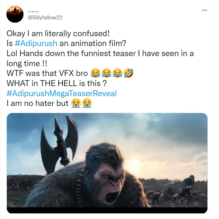 सोशल मीडिया पर फिल्म को अपने वीएफएक्स के लिए खूब खरी-खोटी सुननी पड़ रही है। कुछ लोगों ने तो यह तक कह दिया कि आदिपुरुष बड़े बजट में बनाया गया एक सस्ता वीडियो गेम।
