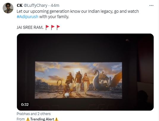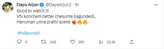 अन्य यूजर ने लिखा, "ये एक अच्छी फिल्म है, फिल्म के VFX काफी अच्छे हैं। हनुमान जी के सीन्स भी उच्च लेवल हैं"।