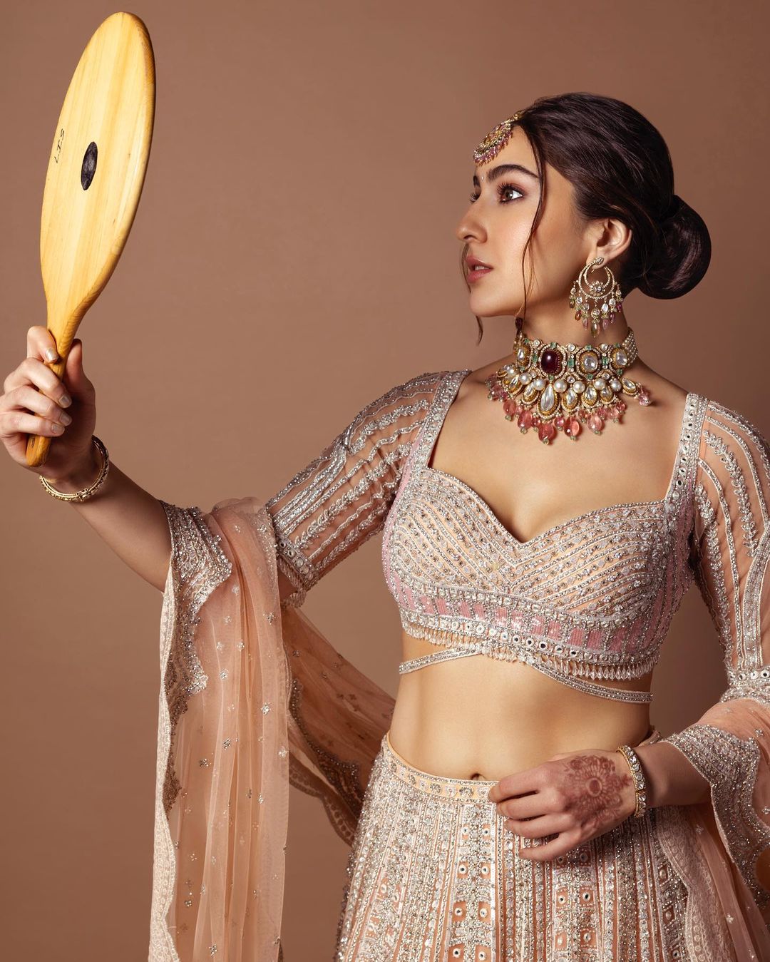 इन तस्वीरों में आप देख सकते हैं कि सारा अली खान इंडियन ट्रेडिशनल ड्रेस में नजर आ रही हैं। एक अन्य फोटो में सारा हाथ में आईना लिए खुद का सुंदर रूप निहारती हुईं दिख रही हैं। कुल मिलाकार इन फोटो में सारा अली खान का लुक बेहद गॉर्जियस लग रहा है, जिसे देखकर आप भी उनकी खूबसूरती के दीवाने हो जाएंगे।