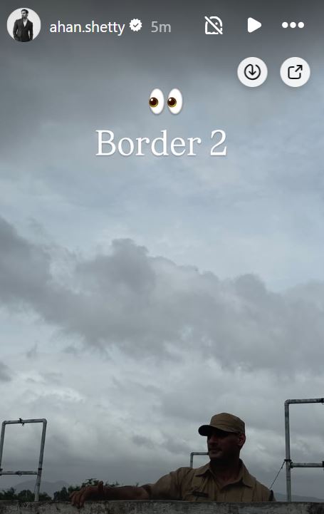 एक तस्वीर में अहान शेट्टी फौजी की वर्दी और टोपी में दिख रहे हैं। दीवार के उस पार खड़े अभिनेता का चेहरा क्लियर नहीं दिखाई दे रहा है। इस तस्वीर के साथ उन्होंने कैप्शन में लिखा, "बॉर्डर 2"।