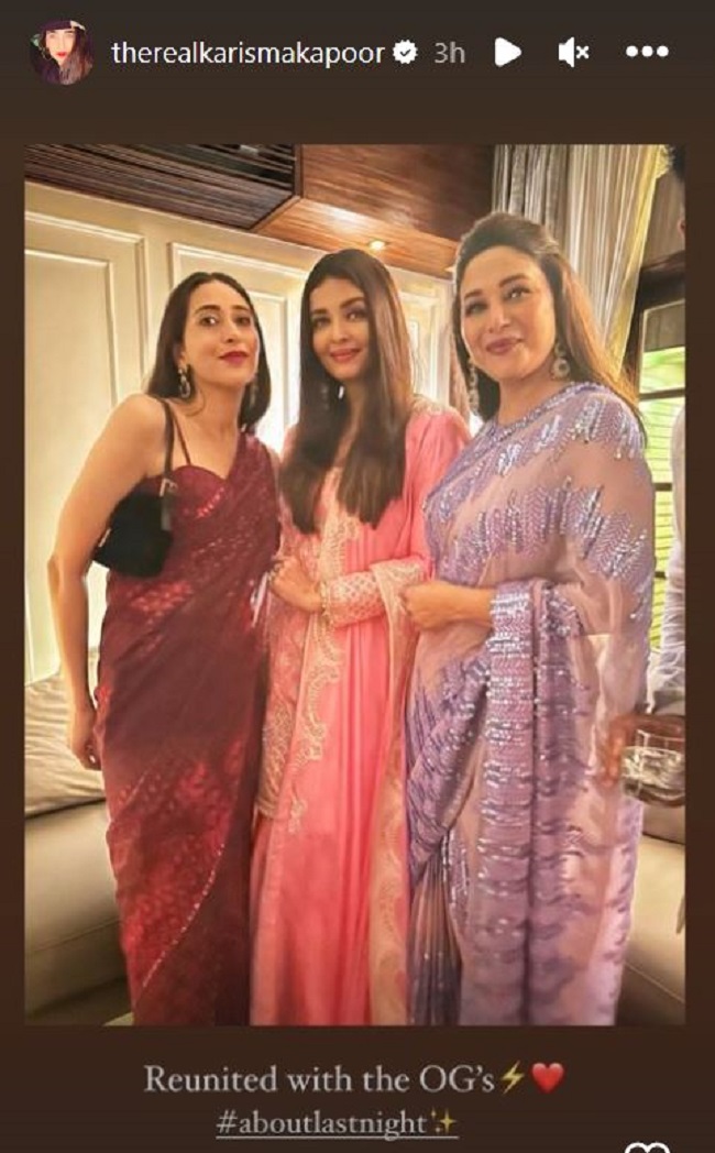 Aishwarya Rai and Karisma Kapoor Photos ऐश्वर्या राय बच्चन और करिश्मा कपूर पहली बार साथ नजर आए है। दोनों ने एक फोटो क्लिक करवाया है। खास बात यह है कि इसे ऐश्वर्या राय ने सोशल मीडिया पर शेयर किया है। इसमें माधुरी दीक्षित भी नजर आ रही है।
