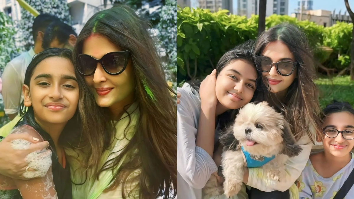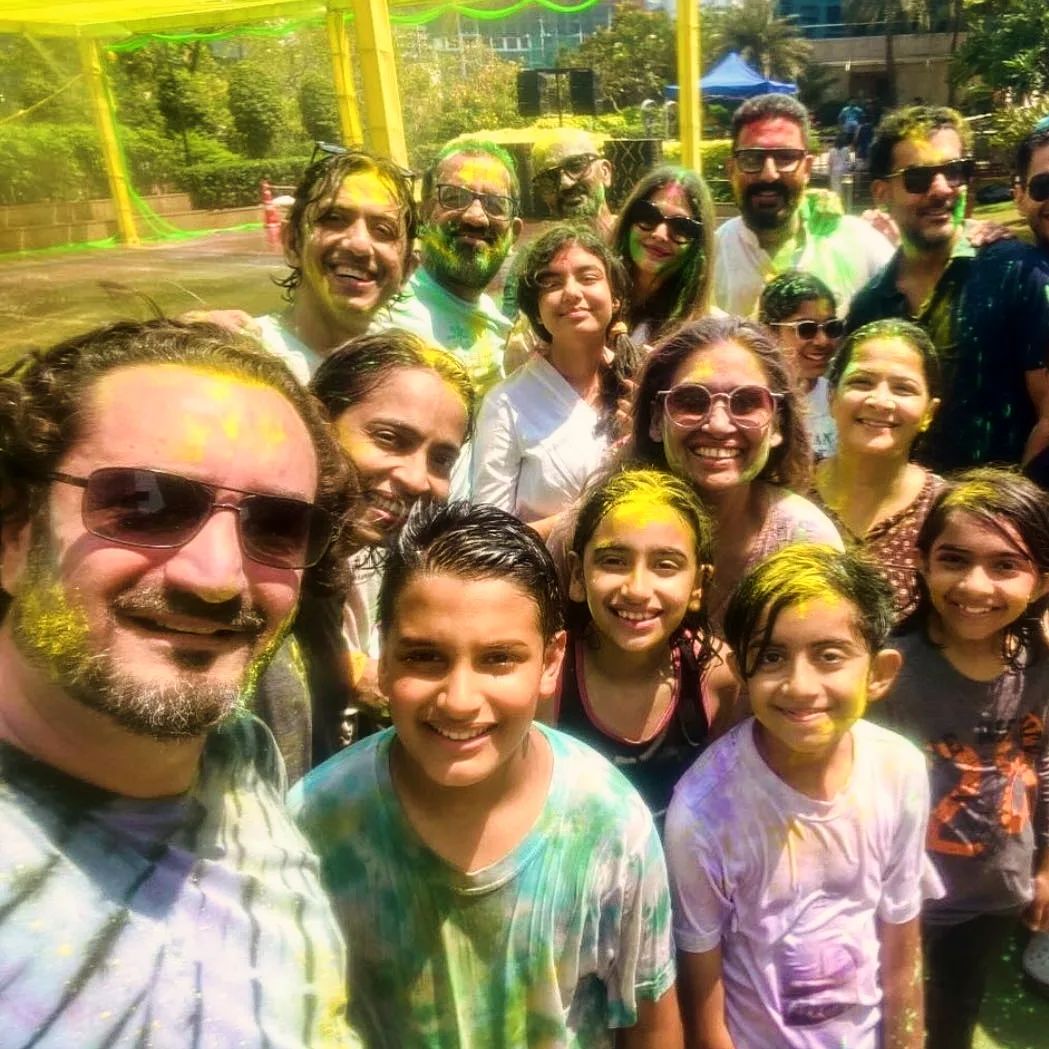 इस तस्वीर में ऐश्वर्या-अभिषेक चेहरे पर ढेर सारा गुलाल लगा नजर आ रहा है। बेटी आराध्या भी इस जश्न में शामिल हुईं और अपने दोस्तों के साथ पोज दिया। उन्होंने अपने किसी दोस्त की बेटी के साथ सेल्फी भी ली।