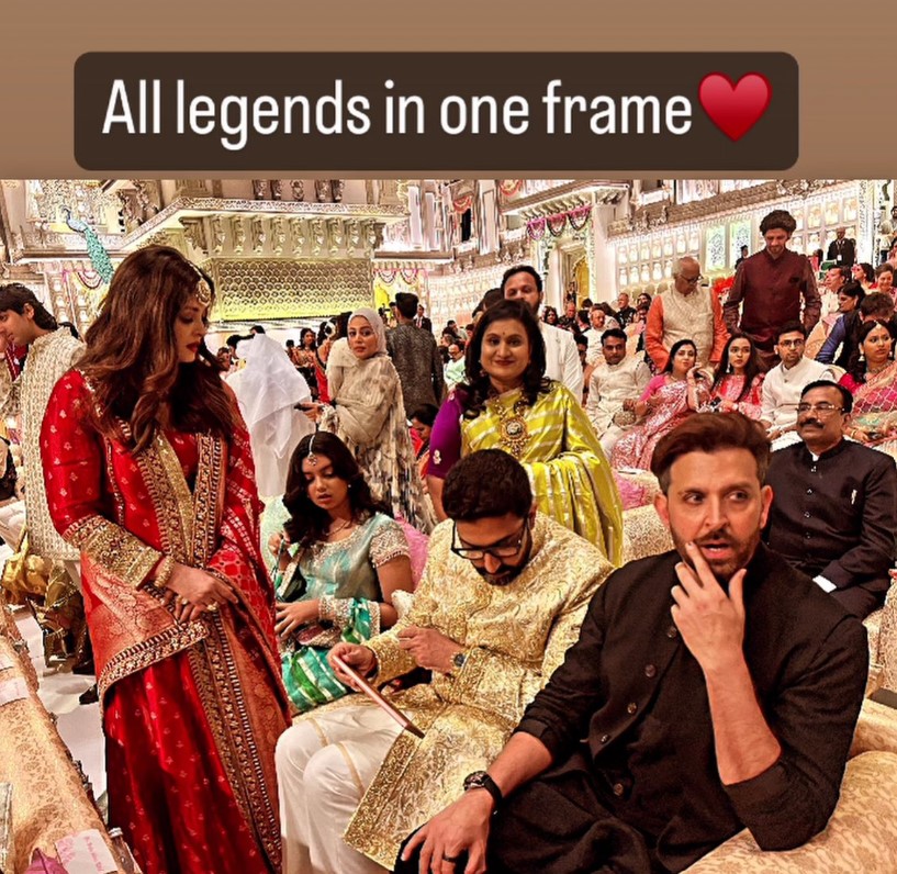 सोशल मीडिया पर शादी से अभिषेक और ऐश्वर्या की एक फोटो वायरल हो रही है। इसमें अभिषेक, ऋतिक रोशन (Hrithik Roshan) के साथ बैठे नजर आ रहे हैं। अभिषेक के सामने ऐश्वर्या खड़ी हैं और आराध्या भी वहीं बैठी हैं। इस पिक्चर ने फैंस का ध्यान अपनी ओर आकर्षित किया है। इसी के साथ इन अफवाहों पर भी पूर्णविराम लगाया है कि दोनों के बीच सबकुछ ठीक नहीं है।