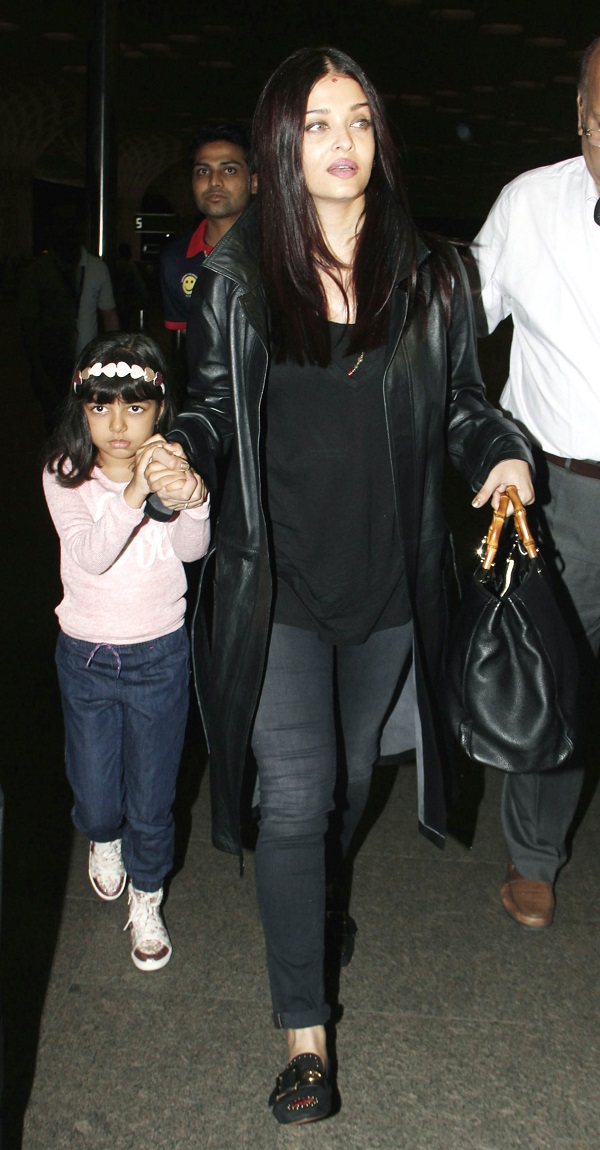 आप देख सकते हैं ऐश्वर्या इस ब्लैक ऑउटफिट में बिल्कुल अलग सी लग रही हैं। बता दें कि हाल ही में आराध्या मॉम और डैड के साथ लन्दन और न्यूयॉर्क घूमकर आई हैं। इस बीच पिछले दिनों यह पूरा परिवार इलाहाबाद में भी था।