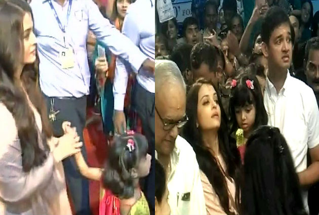 तस्वीरें : ऐश्वर्या राय ने भारी भीड़ के बीच बेटी आराध्या को कराए गणपति के दर्शन
