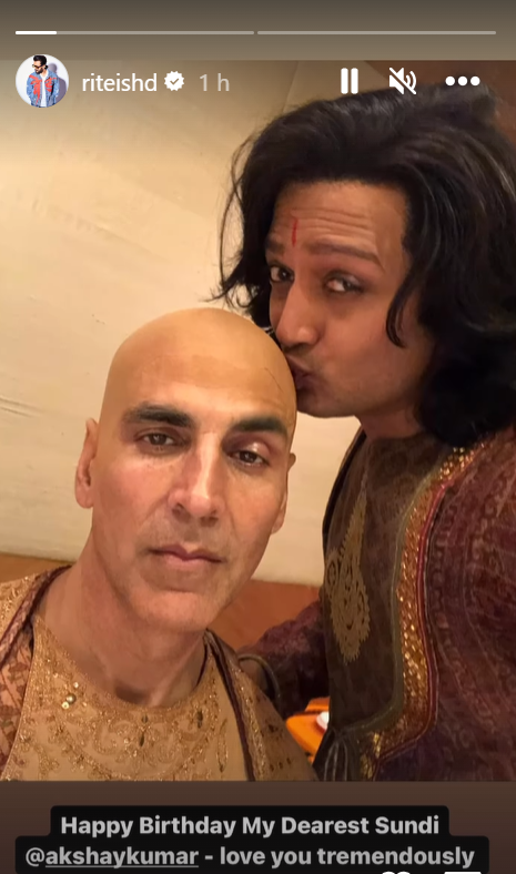 'हाउसफुल' फिल्म की सीरीज में साथ काम कर चुके एक्टर रितेश देशमुख ने अक्षय कुमार के साथ एक तस्वीर शेयर की है। इस तस्वीर के साथ उन्होंने कैप्शन में लिखा 'जन्मदिन मुबारक हो प्रिय सुंडी' अक्षय कुमार। बहुत प्यार (बाला एवं बांगड़ू महाराज)।