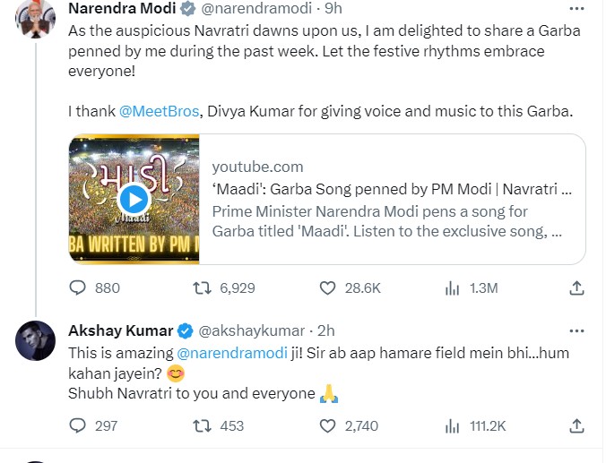 पीएम मोदी ने नवरात्रि स्पेशल सॉन्ग 'गरबो' के लिखे लिरिक्स, चिंता में आए अक्षय कुमार, बोले- 'हम कहां जाएं'