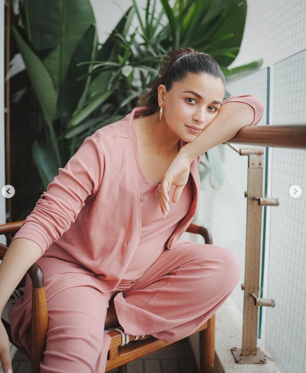 लाइट पिंक कलर के ट्रैकसूट जैसे आउटफिट में आलिया ने अपने बढ़ते पेट की कुछ झलकें दिखाई है। इन तस्वीरों में आलिया प्यारी सी स्माइल दे रही हैं। उनके चेहरे की मासूमियत और न्यूड मेकअप उन पर बहुत सूट कर रहा है।