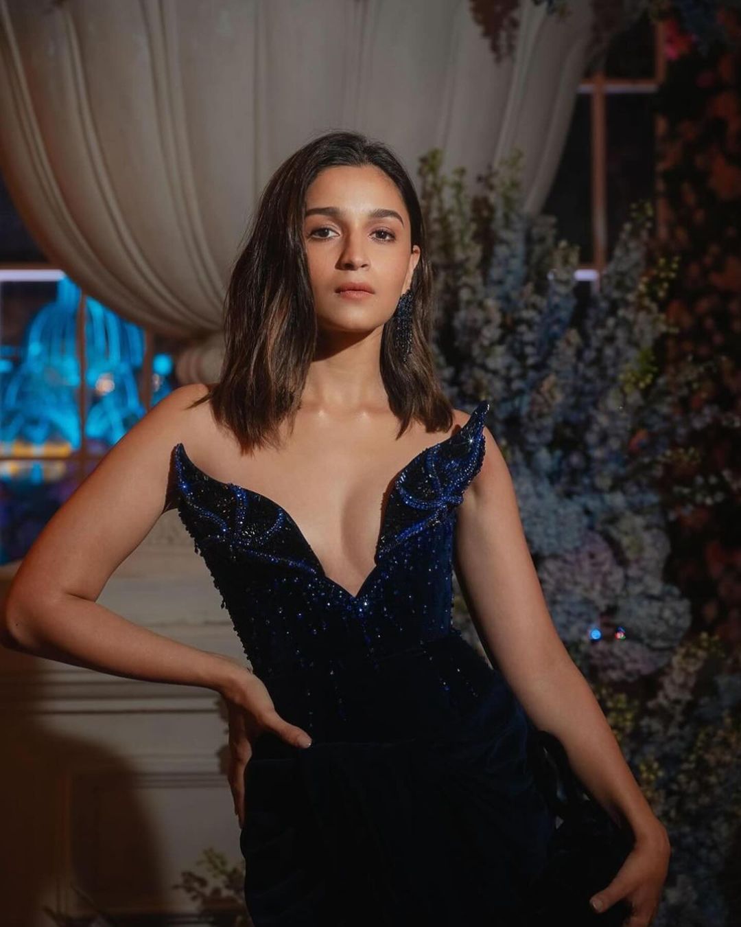 इस दौरान सोशल मीडिया प्लेटफॉर्म एक्स पर आलिया की कुछ लेटेस्ट तस्वीरें सामने आई हैं, जो अनंत और राधिका के प्री वेंडिंग फंक्शन के दौरान की बताई जा रही हैं। इन फोटो में आप देख सकते हैं कि जिगरा एक्ट्रेस ब्लू शेड के वन पीस एवनिंग गाउन को पहने हुए दिखाई दे रही हैं। इस स्टाइलिश आउटफिट में उनका लुक हद से ज्यादा बोल्ड लग रहा है।