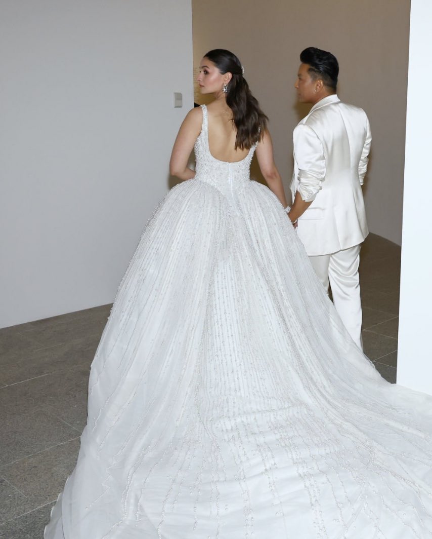 मेरा लुक आज रात इसी से प्रेरित था और विशेष रूप से सुपरमॉडल क्लाउडिया शिफर के 1992 के चैनल ब्राइडल लुक से। मैं कुछ ऐसा पहनना चाहती थी, जो ऑथेंटिक लगे और भारत में बना हो। एक लाख मोतियों से की गई एम्ब्रॉयडरी प्रबल गुरुंग की मेहनत का ही नतीजा है। मुझे गर्व है कि मैं अपने पहले मेट के लिए इसे पहन रही हूं।'
