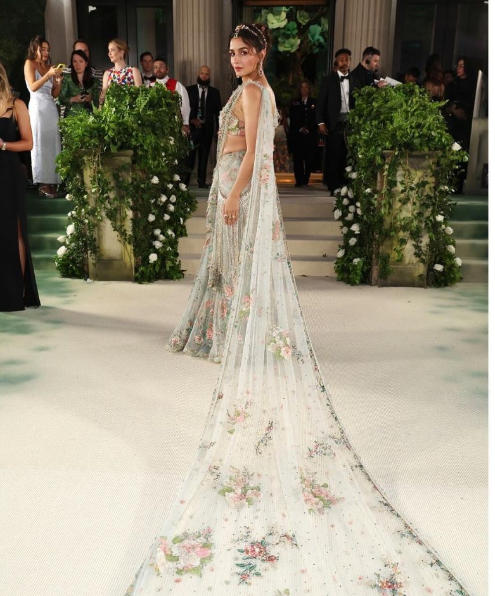 मेट गाला 2024 के कारपेट पर आलिया (Alia Bhatt) ने बॉलीवुड के मशहूर डिजाइनर सब्यसाची की साड़ी में एंट्री मारी। इस दौरान एक्ट्रेस बेहद खूबसूरत नजर आईं।