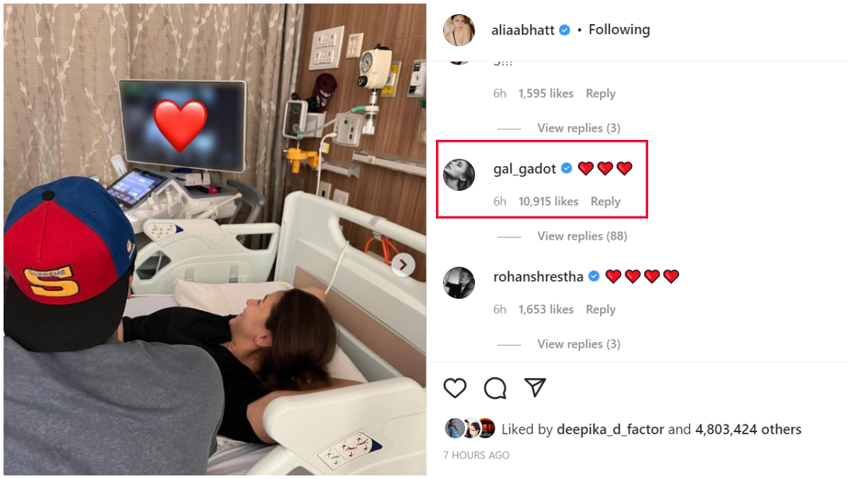 इन बधाइयों में एक बधाई बेहद खास है, क्योंकि यह सीधे हॉलीवुड से आयी है। वंडर वुमन के नाम से लोकप्रिय अभिनेत्री गैल गैडट ने भी आलिया की इस गुड न्यूज पर रिएक्ट किया। गैल ने दिलों की इमोजी बनाकर सून-टू-बी मॉम के लिए अपना प्यार भेजा। आलिया अपनी डेब्यू हॉलीवुड फिल्म हार्ट ऑफ स्टोन में गैल के साथ स्क्रीन शेयर करती नजर आएंगी। रणबीर से शादी करने के बाद आलिया ने सबसे पहले इस फिल्म की शूटिंग के लिए अमेरिकाकी उड़ान भरी थी। इसकी जानकारी उन्होंने सोशल मीडिया के जरिए भी दी थी।