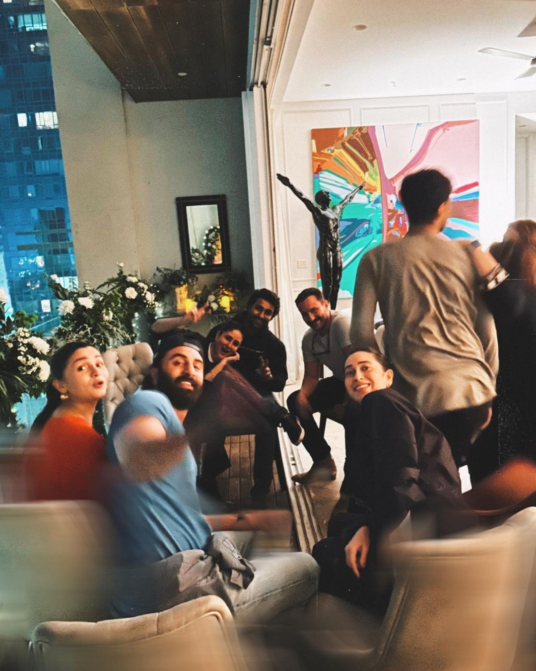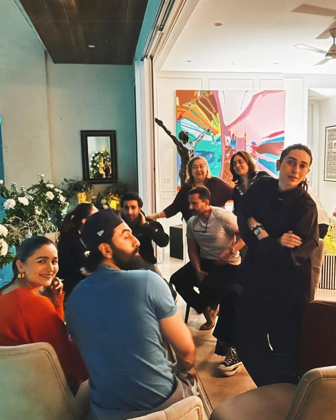 दूसरी तस्वीर में रणबीर, सैफ, आदर जैन और अन्य सहित पूरे कपूर खानदान एक साथ मस्ती के मूड में नजर आ रहा है। करिश्मा ने कैप्शन में लिखा- "फैम जैम ऑलवेज द बेस्ट #फैमिली लव। इस पोस्ट पर आलिया ने कमेंट किया, "हाउ क्यूट या।" नव्या, नीतू, सबा अली खान और आदर ने लाल दिल वाले इमोजी बनाए।