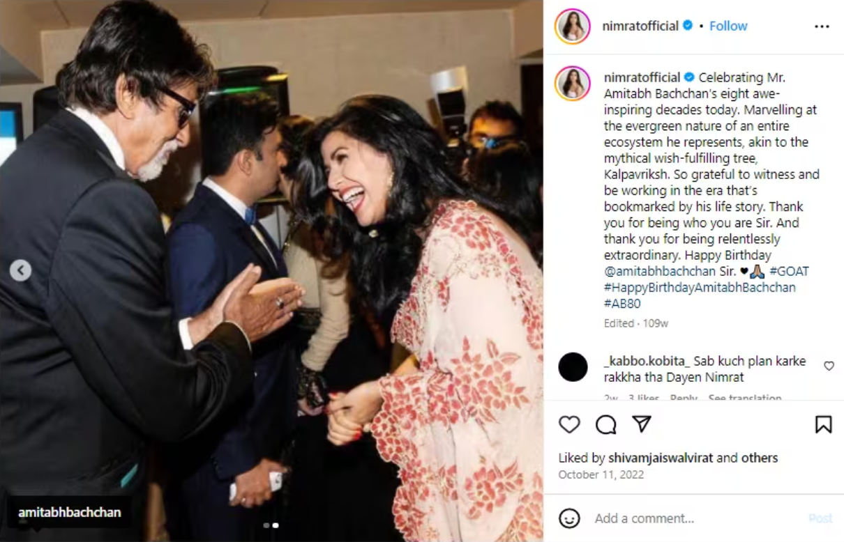 इस लेटर को खुद निमरत कौर ने अपने सोशल मीडिया अकाउंट पर शेयर किया था। उन्होंने लिखा था,”18 साल पहले, जब मैंने पहली बार मुंबई में कदम रखा था, तो सोचा था कि अमिताभ बच्चन एक दिन मेरा नाम जानेंगे, हमारी मुलाकात को याद रखेंगे, एक विज्ञापन में मेरे काम की सराहना करेंगे…अब सालों बाद, एक फिल्म में मेरे द्वारा किए गए काम के लिए उन्होंने मेरे लिए एक नोट और फूल भेजे हैं। यह सब मेरे लिए एक सपने जैसा है।”