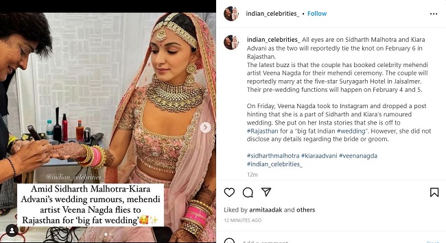 कियारा आडवाणी और सिद्धार्थ मल्होत्रा की शादी सूर्यागढ़ महल में हो रही है
