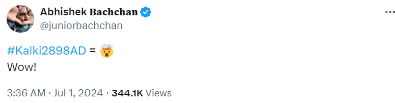 पिता की फिल्म देखने के बाद अभिषेक बच्चन ने अपने सोशल मीडिया पर इसका रिव्यू शेयर किया। उन्होंने सिर्फ एक शब्द में पूरी कहानी बयां कर दी है। अभिषेक ने एक्स हैंडल पर लिखा, 'वाओ'।