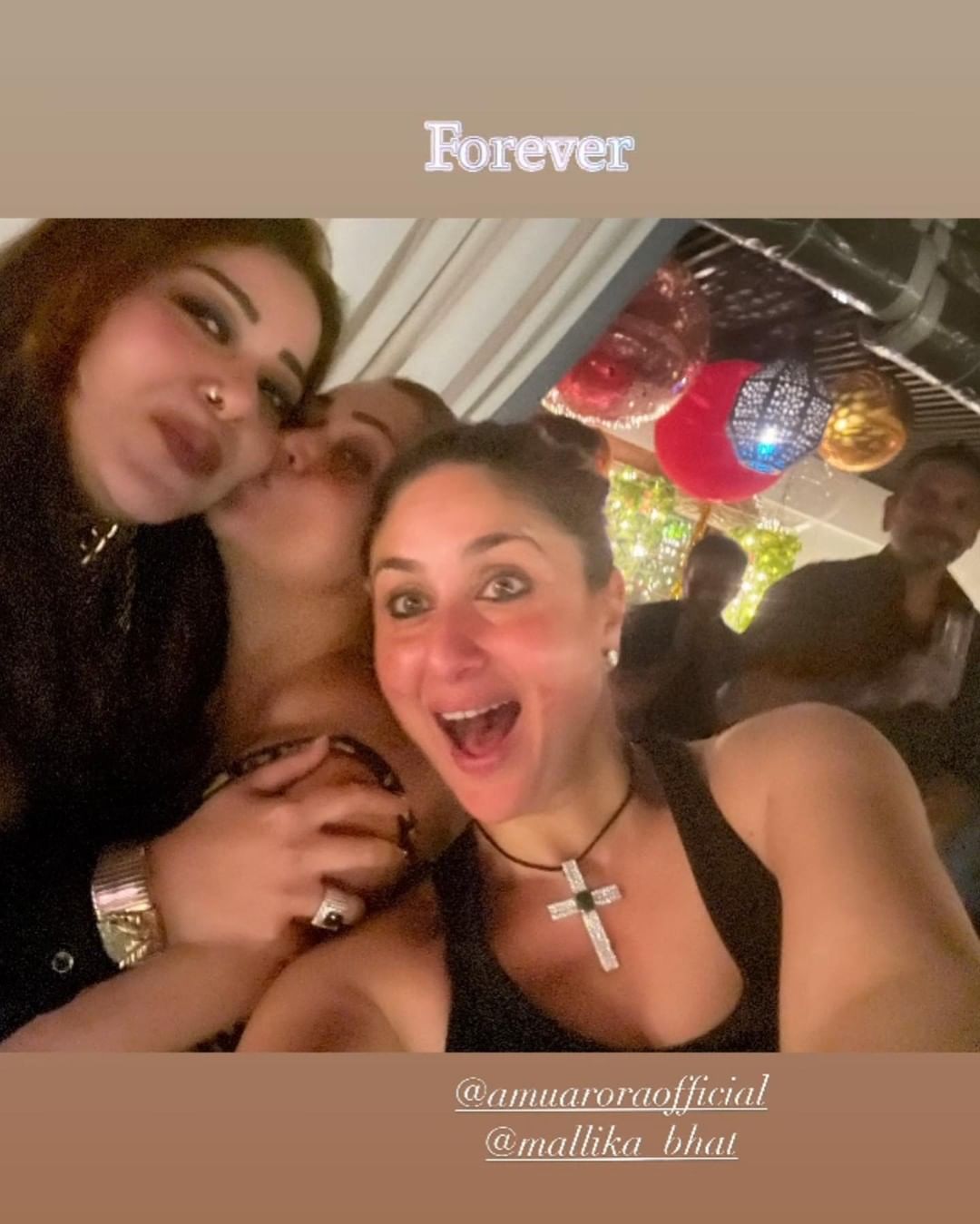 वहीं अब पार्टी की कुछ तस्वीरें सामने आई है, जिसमे करीना, एपी ढिल्लों, मलाइका और अमृता एक साथ पोज देते नजर आ रहे हैं। कैप्शन में बेबो ने लिखा है कि- एपी ढिल्लों इन दा हाउस।