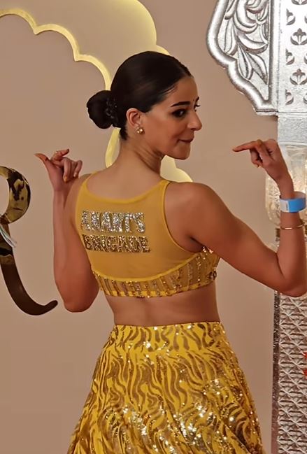 सिर्फ अर्जुन कपूर ही नहीं, अनंत-राधिका की शादी में अनन्या पांडे (Ananya Panday) और शनाया कपूर (Shanaya Kapoor) भी बाराती बनकर आये। उनका ग्लैमरस आउटफिट भी कस्टमाइज्ड है। अनन्या ने येलो कलर का लहंगा और चोली पहना था, जिसे उन्होंने सिंपल एक बिंदी और स्लीक बन से स्टाइल किया।