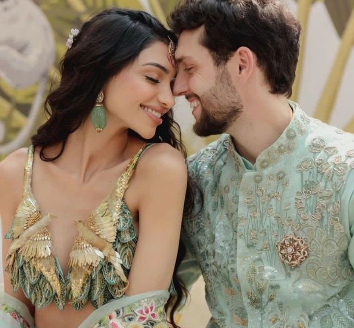 मांग में टीका और कानों में झुमके पहने हुए हैं। इसके साथ ही उन्होंने हाथों में हरे रंग की खूबसूरत चूड़ियां पहनी हैं। वहीं अलाना के मंगेतर आइवर मैक्रे ने अलाना से मैचिंग करते हुए मिंट ग्रीन कलर की शेरवानी पहनी।