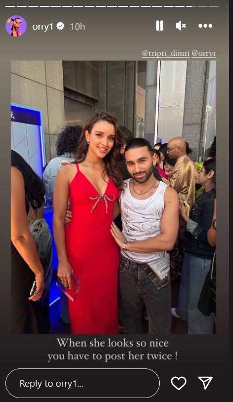 ओरी ने तृप्ति के साथ अपने सिग्नेचर स्टाइल में फोटो क्लिक कराई है। उन्होंने एक्ट्रेस के पेट पर हाथ रख स्टाइलिश पोज दिया है।