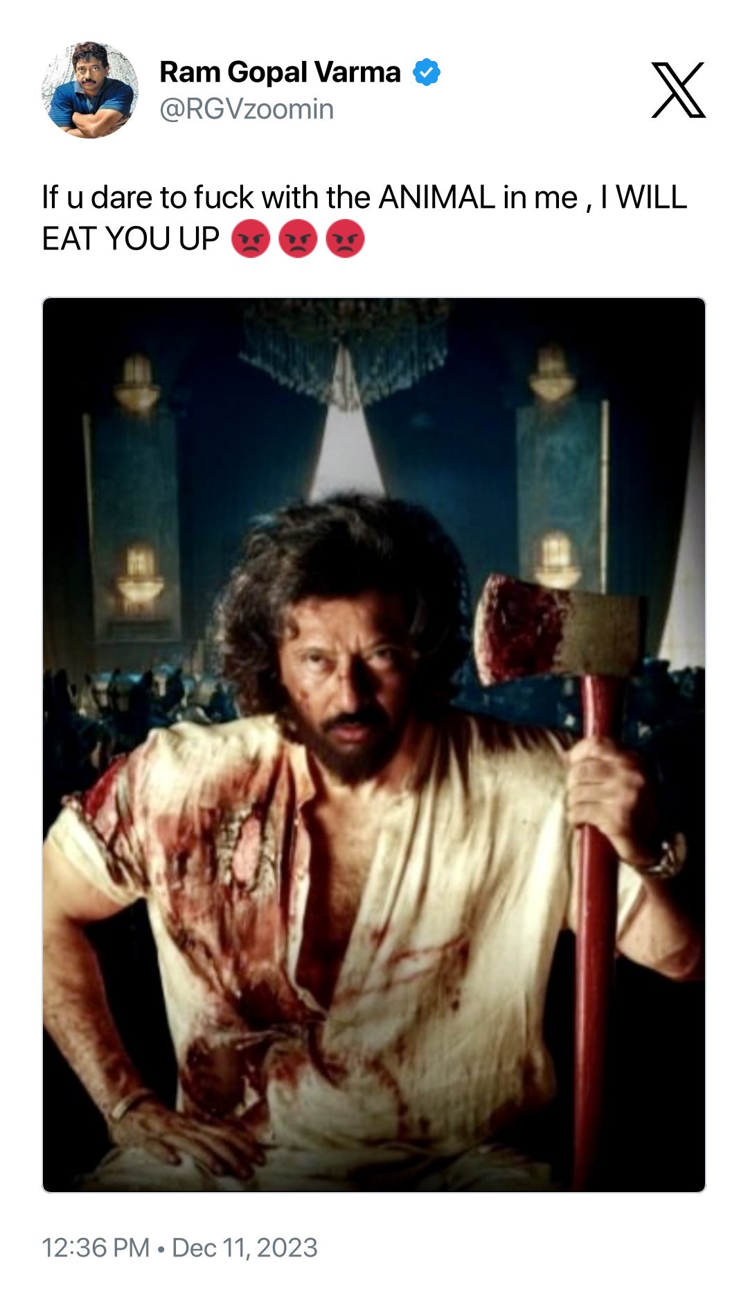 एनिमल की रिलीज के वक्त भी राम गोपाल वर्मा ने फिल्म की तारीफ की थी। उन्होंने फिल्म का रिव्यू अपने एक्स (ट्विटर) अकाउंट पर शेयर किया था।