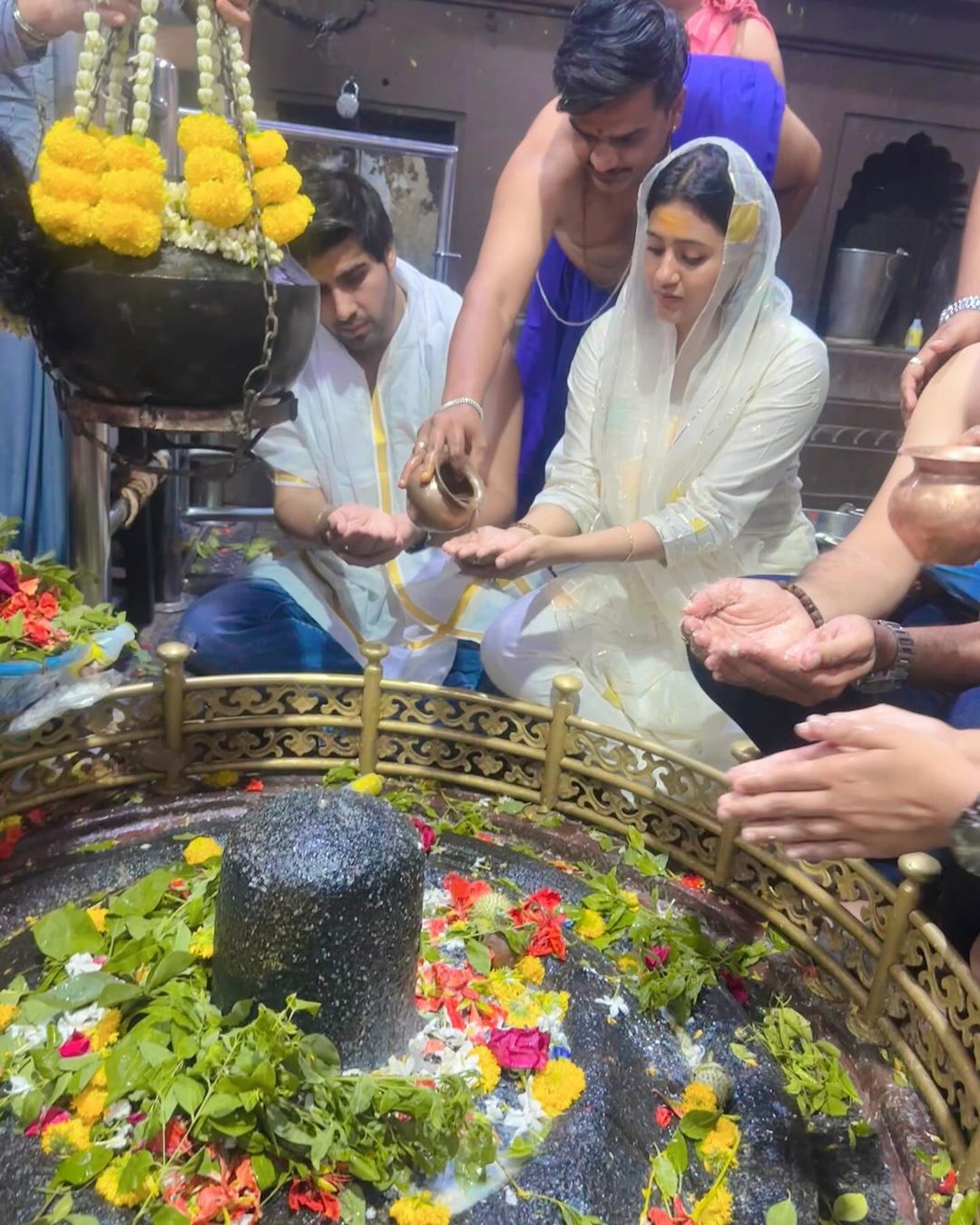अंजलि अरोड़ा इन दिनों ब्वॉयफ्रेंड आकाश के साथ घृष्णेश्वर महादेव के मंदिर पहुंची है। जहां उन्होंने भगवान शिव का अभिषेक किया और पूरे विधि विधान से पूजा अर्चना की। इस मौके पर दोनों सफेद कपड़ों में नजर आए।