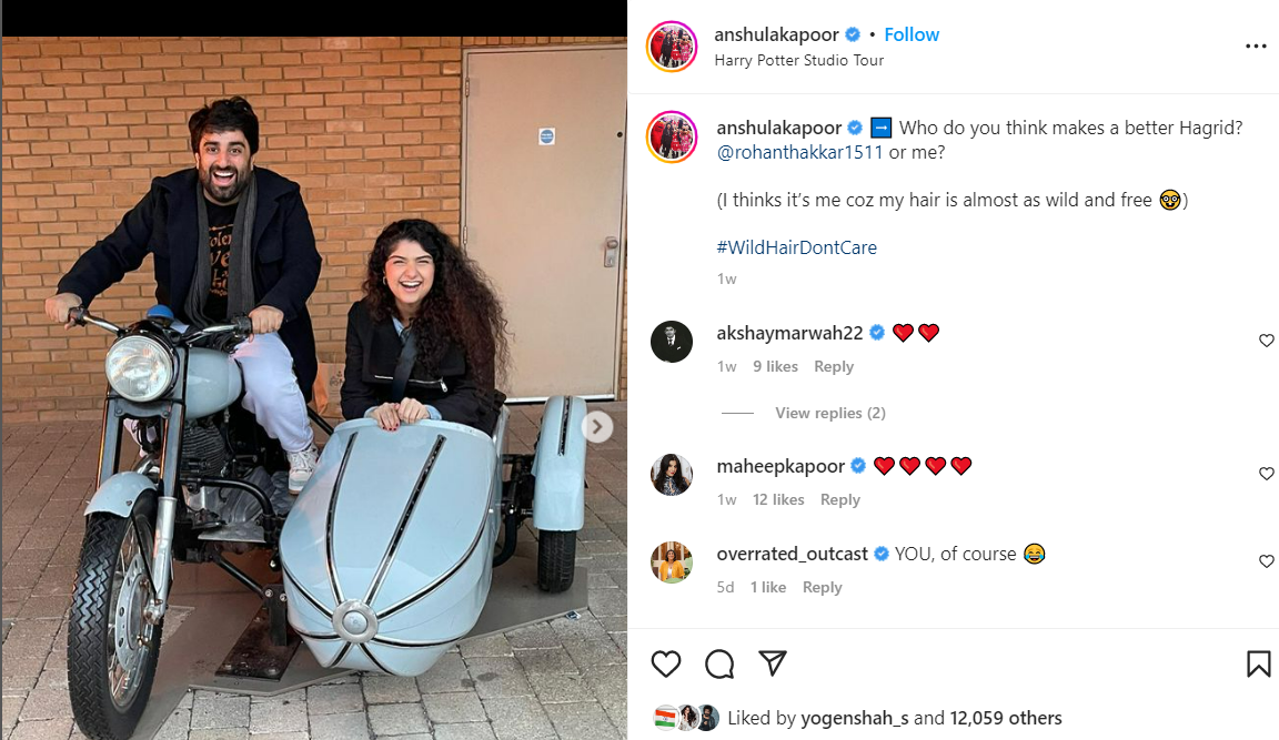 अंशुला की इस पोस्ट पर सेलेब्स और यूजर्स के जमकर कमेंट आ रहे हैं। एक्टर संजय कपूर ने लिखा- ऐसे ही हमेशा खुश रहो। वहीं एक यूजर ने लिखा है- क्या यह आपका ब्वॉयफ्रेंड है? वहीं दूसरे ने लिखा- क्या आप रोहन को डेट कर रही है। एक ने लिखा- आप दोनों की जोड़ी सलामत रहे। इससे पहले ही अंशुला रोहन संग कई तस्वीरे साझा कर चुकी हैं।
