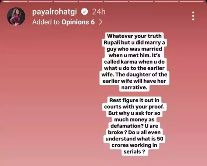 सौतेली बेटी से 50 करोड़ मांगने पर पायल रोहतगी ने लगाई Rupali Ganguly को लताड़, कहा- ये कर्मा है