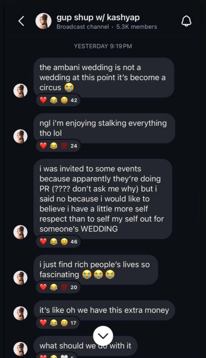 सोशल मीडिया पर उनका एक पोस्ट वायरल हो रहा है, जिसमें लिखा है, 'मुझे कुछ फंक्शन में बुलाया गया था क्योंकि जाहिर तौर पर वो PR कर रहे थे (???? मुझसे मत पूछिए क्यों) लेकिन मैंने मना कर दिया क्योंकि मैं यह विश्वास करना चाहती थी कि किसी की शादी के लिए खुद को बेचने की तुलना में मेरे पास थोड़ा ज्यादा आत्मसम्मान है। लोगों के पास ज्यादा पैसा है तो उन्हें समझ नहीं आ रहा है कि वह उसका क्या करें।
