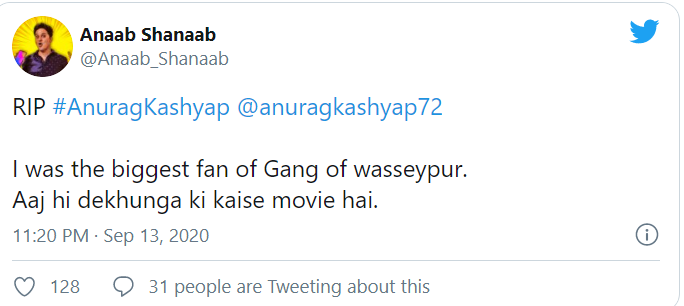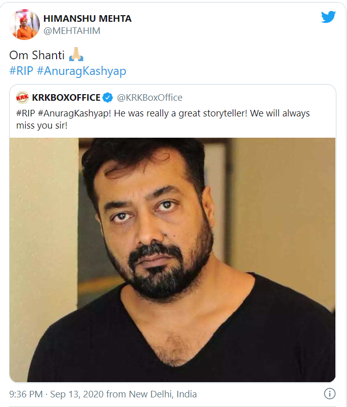 — Anurag Kashyap (@anuragkashyap72) September 14, 2020