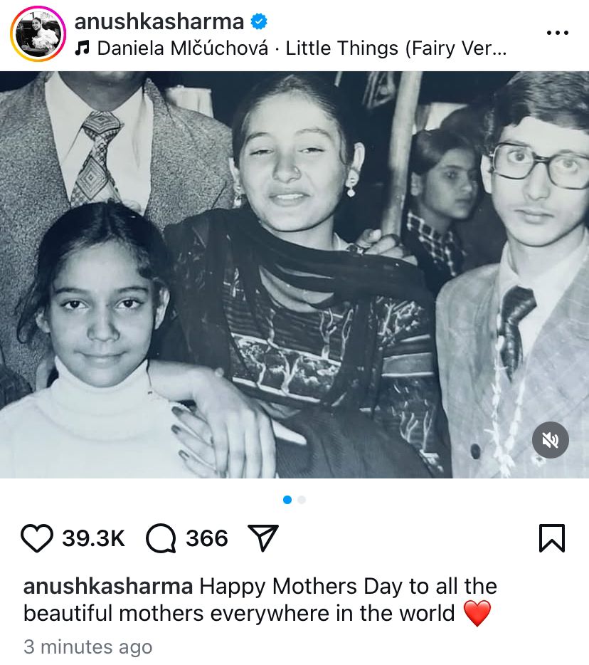 दूसरी अन्य तस्वीर में अनुष्का की सास और विराट कोहली की मां नजर आ रही हैं। इस पोस्ट के कैप्शन में अभिनेत्री ने लिखा है- दुनिया में जितनी भी खूबसूरत मां मौजूद हैं, उनको मेरी तरफ से मदर्स डे की हार्दिक शुभकामनाएं। सोशल मीडिया पर अनुष्का शर्मा का ये लेटेस्ट पोस्ट काफी पसंद किया जा रहा है, जिसकी वजह से ये तेजी से वायरल हो रहा है।