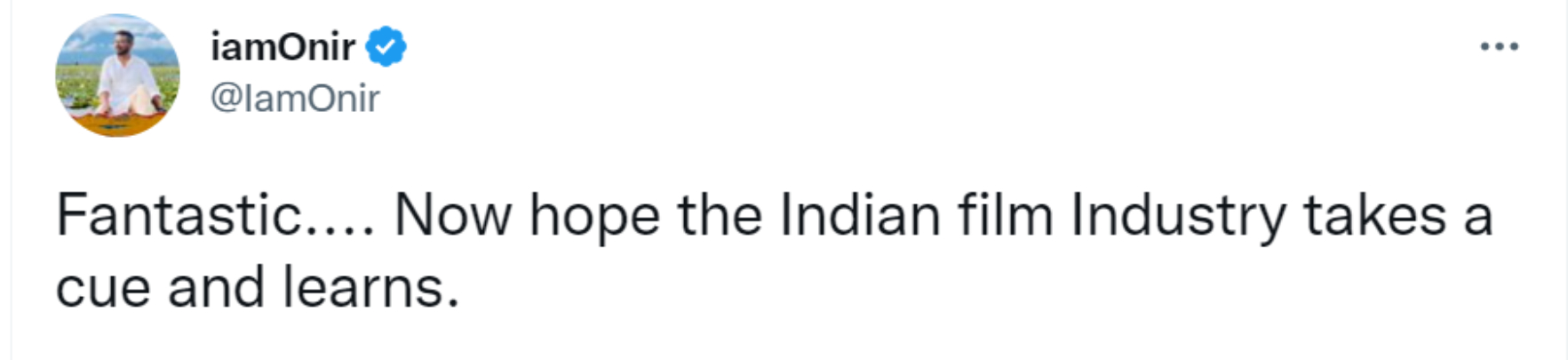 वहीं, फिल्ममेकर ओनीर ने इस फैसले की सराहना करते हुए लिखा- बहुत बढ़िया। अब उम्मीद है कि फिल्म इंडस्ट्री भी इससे क्लू लेते हुए सबक लेगी।