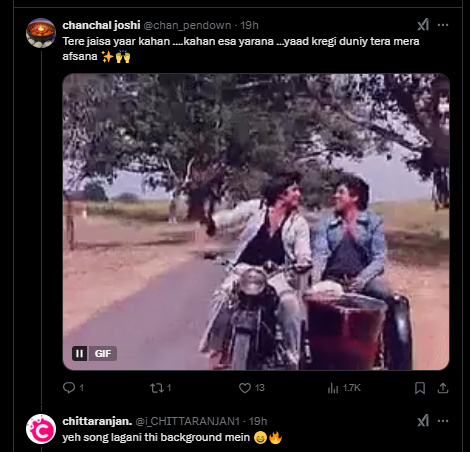 दूसरे यूजर ने लिखा, "तेरे जैसा यार कहां, कहां ऐसा याराना..यद् करेगी दुनिया, तेरा मेरा अफसाना, ये गाना लगाना था वीडियो के साथ"।